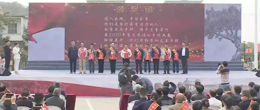 演出现场,对扶贫工作涌现出的16位“脱贫示范户”、13位“扶贫先锋”和8位“带贫